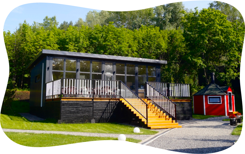 Каждый дом с тремя отдельными спальнями рассчитан на 8 человек. На территории есть банкетный зал до 30 человек – для проведения мероприятий и торжеств